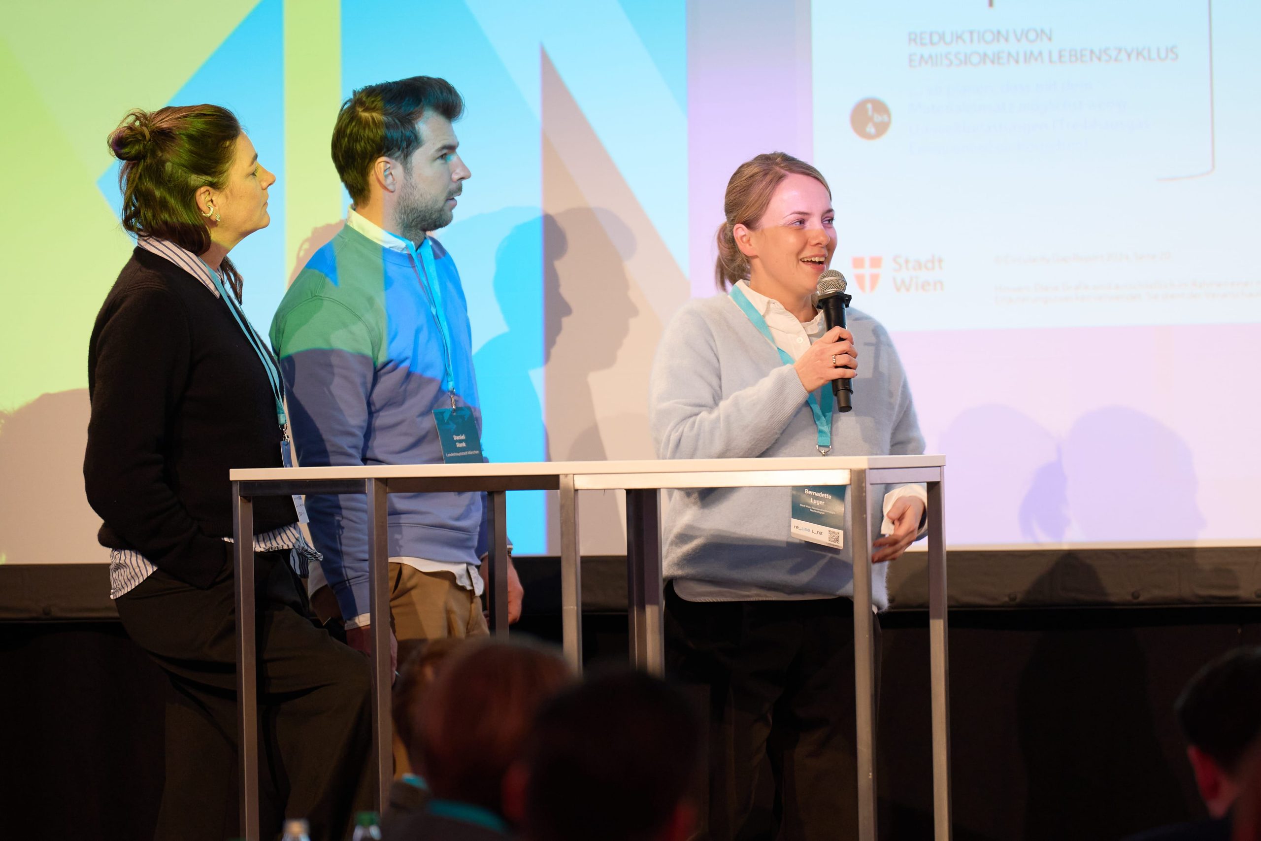 In zehn Workshops arbeiteten die Teilnehmenden an zentralen Hebeln der Kreislaufwirtschaft – von CO₂-optimierter Planung über kreislauforientierte Vergabe und ökologischem Rückbau bis hin zu Datenräumen für Sekundärrohstoffmärkte und neuen Ausbildungsformaten. Die Präsentation von 21 Best Practices zeigte, wie vielfältig und praxisnah zirkuläres Bauen heute schon umgesetzt wird und welche neuen Projekte daraus entstehen.